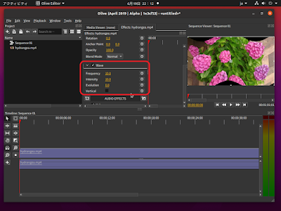Olive EditorでWaveビデオ効果を使用して画像を波のように変形する
